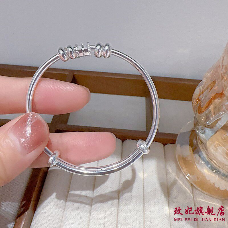 999足银实心手镯女光面素圈闭口纯银手环学生送闺蜜女友生日礼物