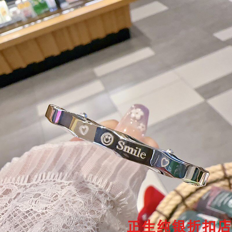 香港正生纯银s999蝴蝶结光面手镯女学生简约百搭闺蜜实心足银小众