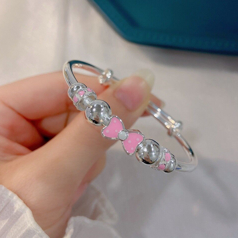 香港正生足银9999蝴蝶结库洛米纯银手镯女宝宝中大童学生儿童礼物