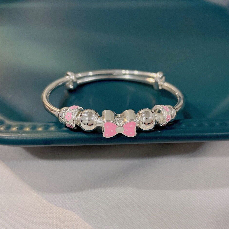 香港正生迪士尼在逃公主蝴蝶结平安纯银手镯足银9999女中童学生款