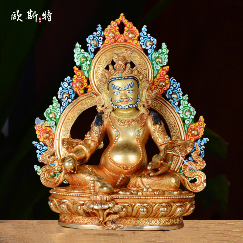 欧斯特 黄财神铜像家用客厅尼泊尔中式7寸铜全鎏金五路财神摆件