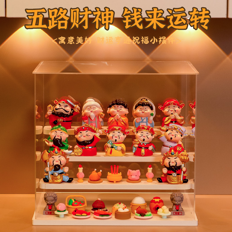 五路财神摆件好运小神仙开业礼物办公室家用供奉展示盒贡品大全套