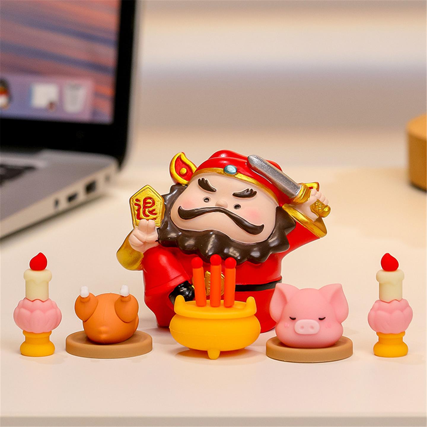 小神仙家居桌面玄关装饰五路财神摆件办公室工位展示架礼品小摆设