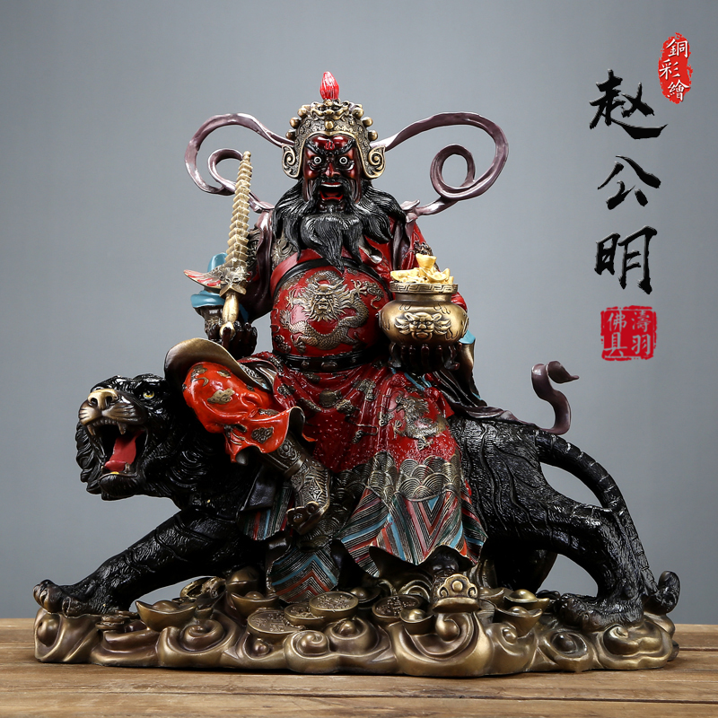 涛羽 赵公明财神骑虎像 黄铜彩绘招财五路财神摆件店铺开业礼品