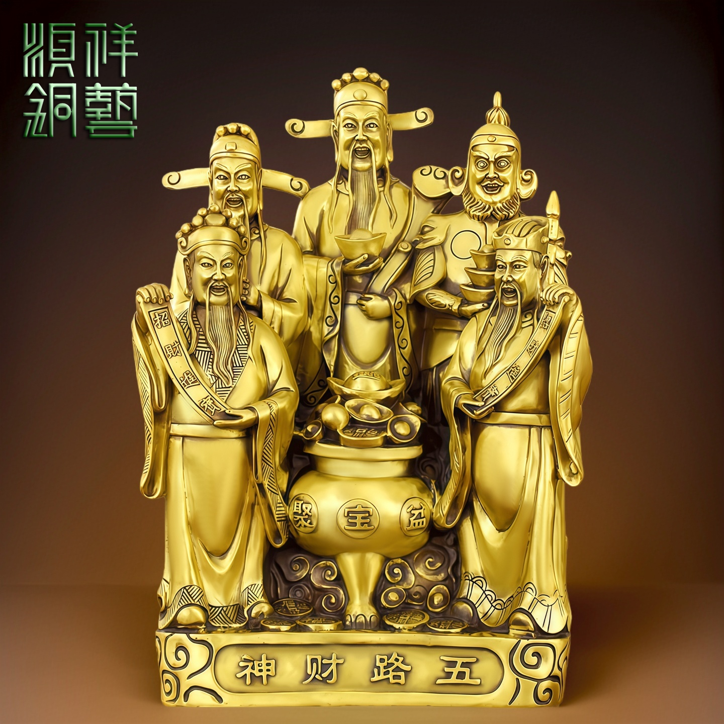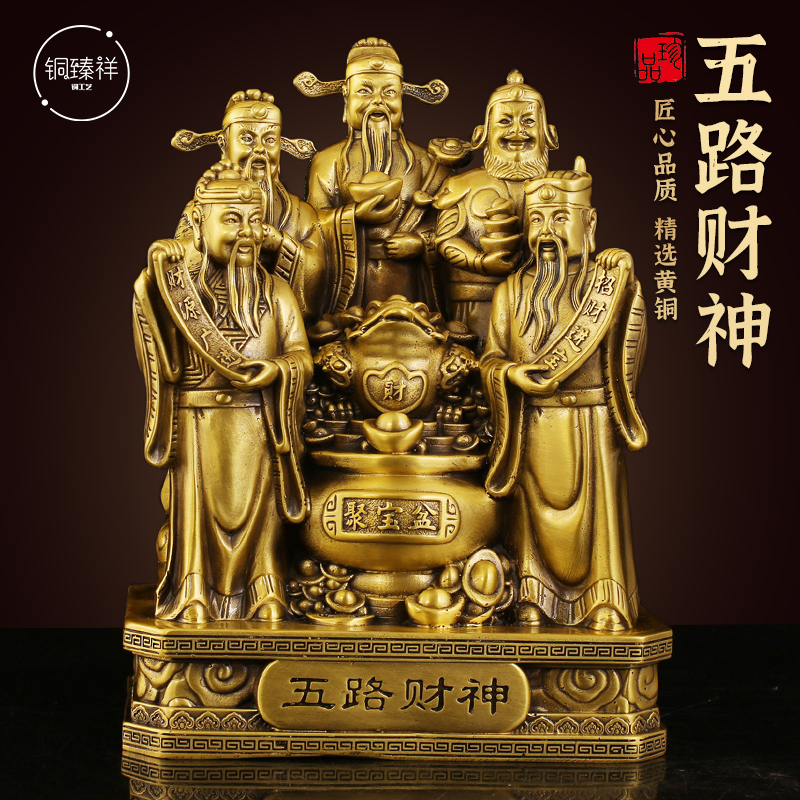 黄铜五路财神摆件招财进宝家居饰品财神爷客厅店铺收银台家用供奉