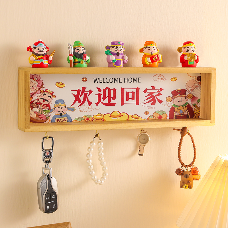 欢迎回家玄关置物架入户门口放钥匙收纳神器五路财神摆件乔迁礼物