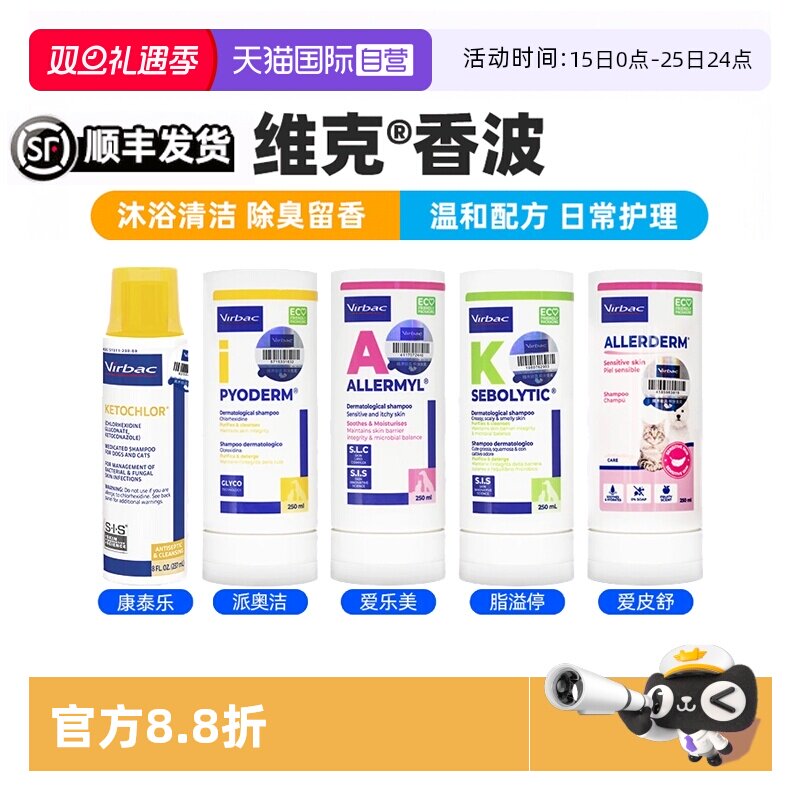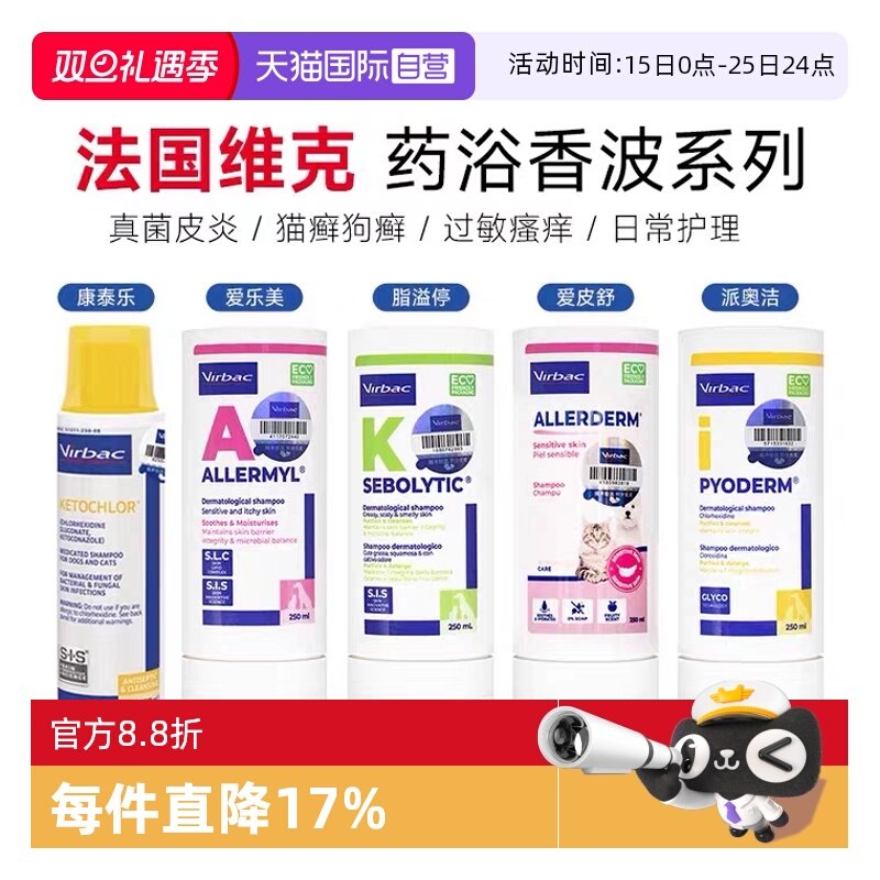 【自营】维克药浴康泰乐香波脂溢停爱美乐脓皮症宠物皮肤真菌药浴