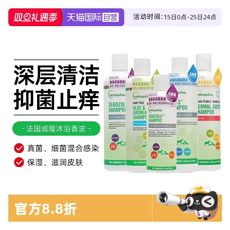 法国威隆爽宝抗真菌药浴必飘芦荟燕麦皮舒狗狗猫咪止痒香波沐浴露