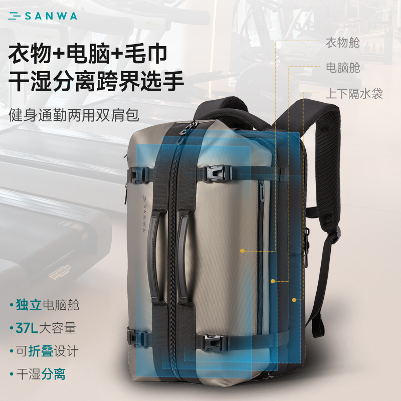 日本SANWA双肩包电脑包健身通勤旅行包大容量多功能背包干湿分离