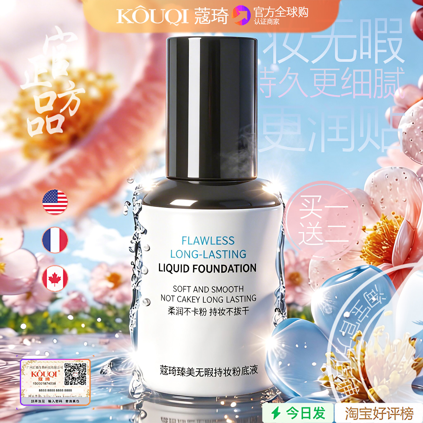 蔻琦羽毛气垫CC霜蔻琦粉底液滚轮正品抖音防水隔离裸妆遮瑕养肤