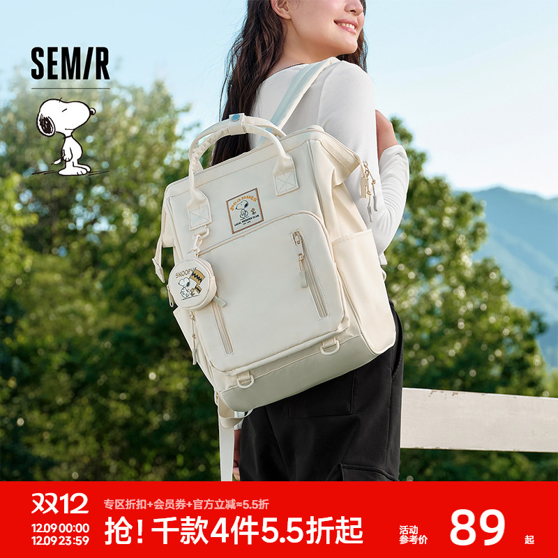 森马双肩包男痛包史努比多巴胺户外情侣背包大容量电脑包书包女潮