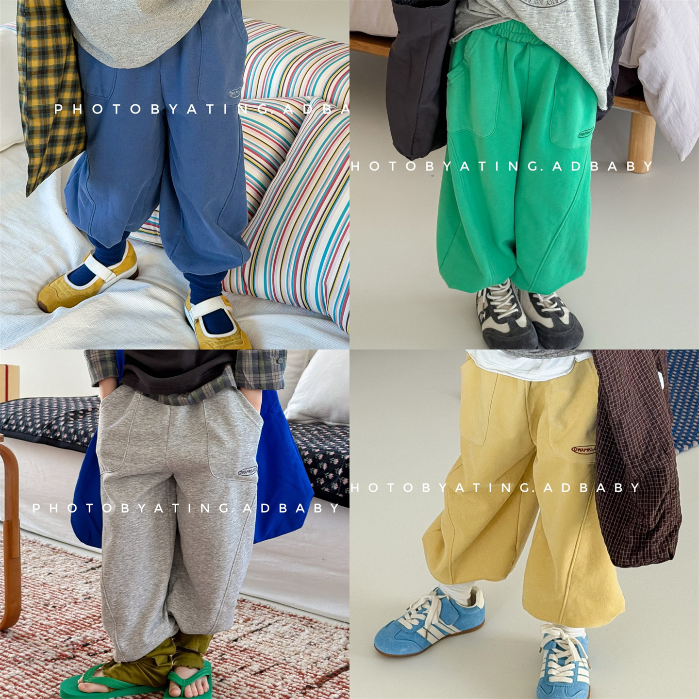 百家布韩版儿童撞色哈伦裤2024秋季新款潮宝宝休闲裤男女童长裤子
