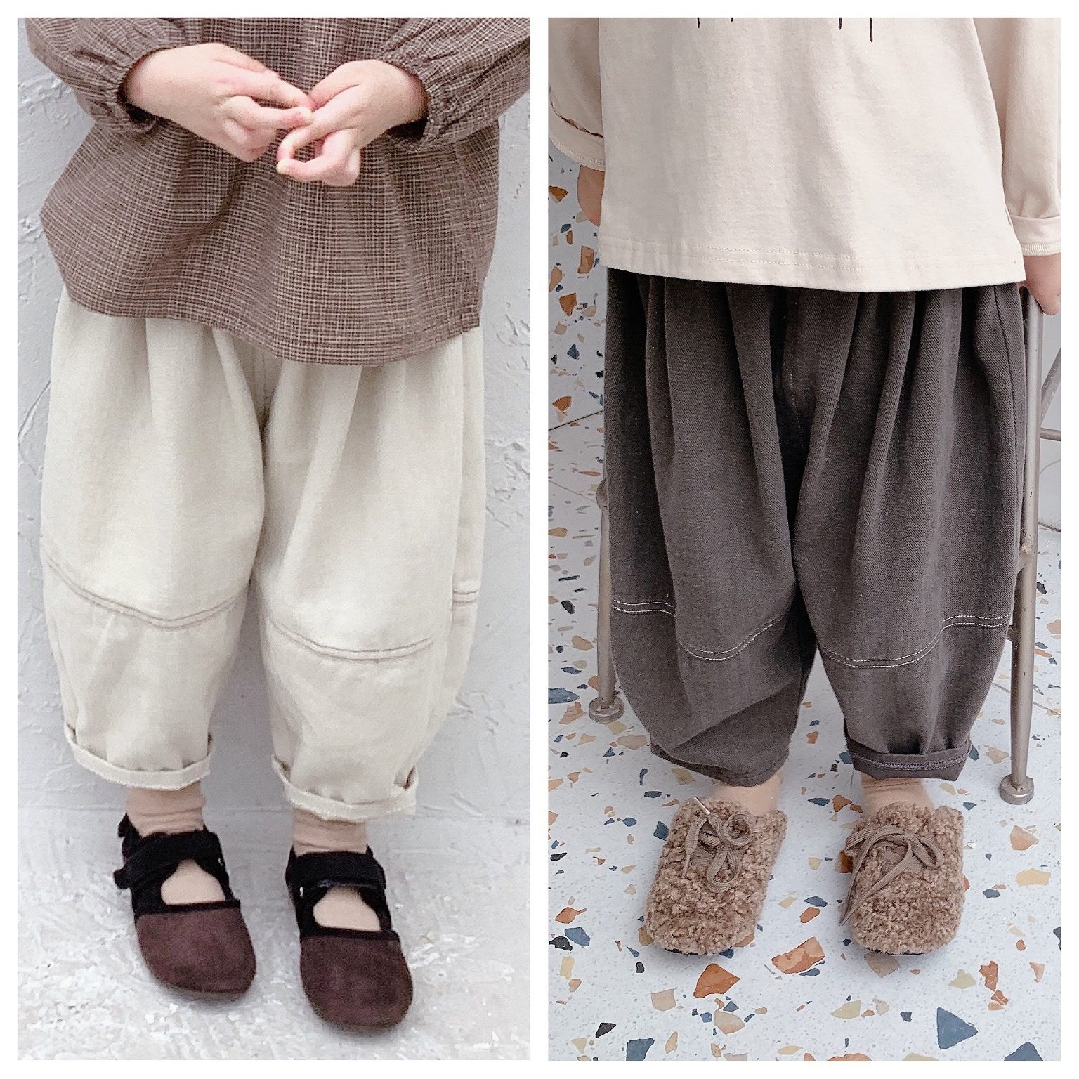 - 女童毛呢哈伦裤