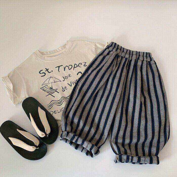 儿童韩版条纹哈伦裤长裤春季新款男童女童九分裤宝宝宽松休闲裤潮