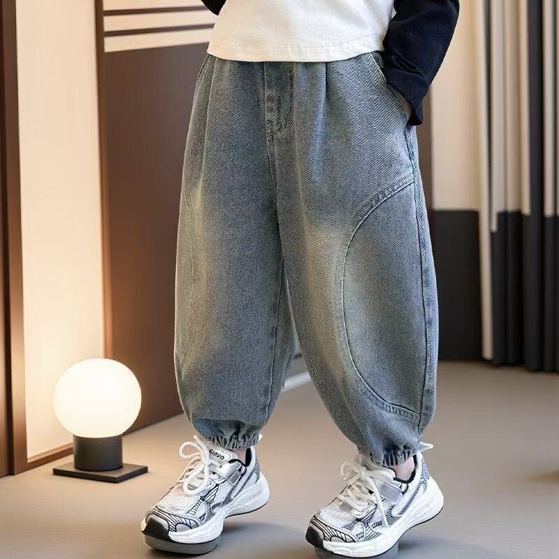 男童牛仔裤春秋装宽松裤子2025新款韩版中大童小脚哈伦裤老爹裤潮