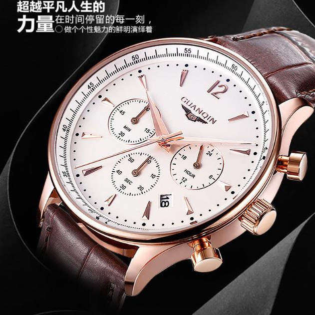 诗高迪时尚大表盘个性霸气韩版潮流男皮带气质三眼多功能男士手表