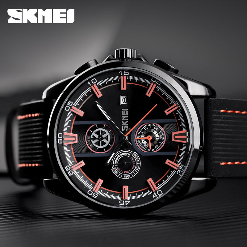 男士时尚六针商务日期手表韩版潮流学生腕表防水皮带男表石英表潮