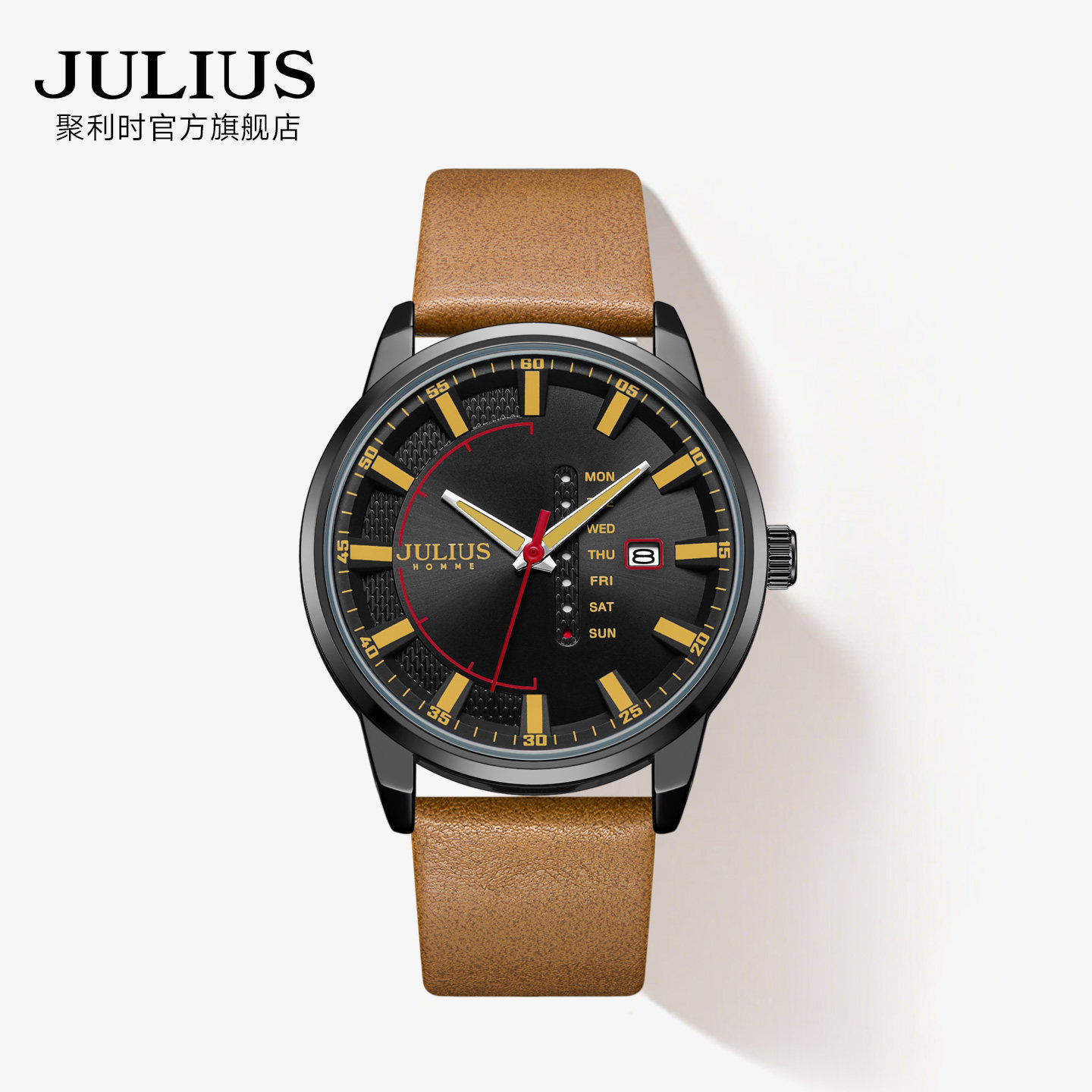 聚利时韩版时尚休闲绅士大气多功能防水日历男士皮带手表JAH137