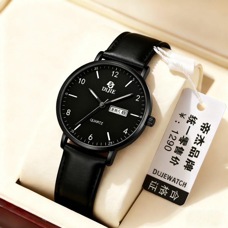歌迪高级感商务夜光大表盘皮带男士韩版潮流时尚商务休闲石英手表