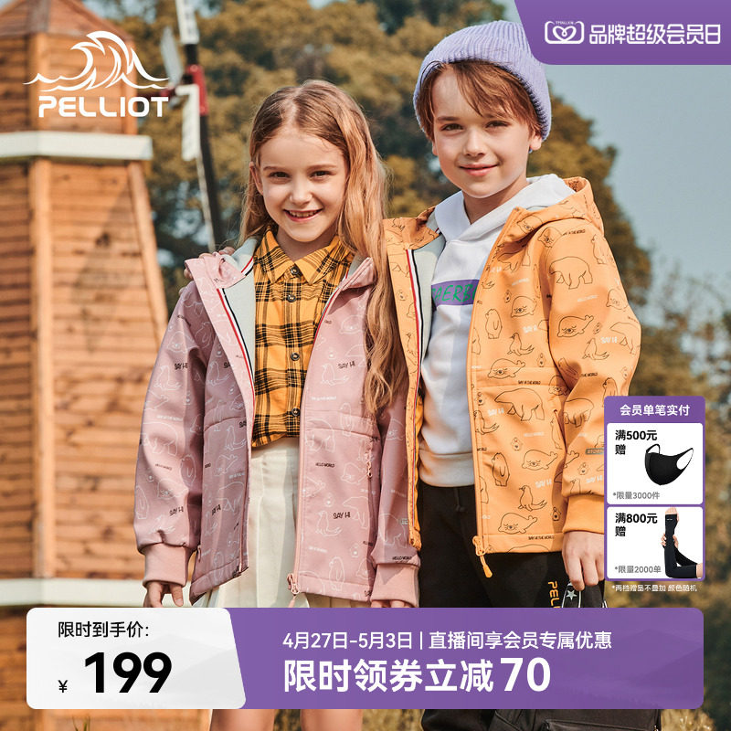 伯希和户外软壳衣男童女童防风防泼水运动外套冲锋衣内胆休闲上衣