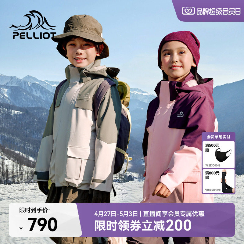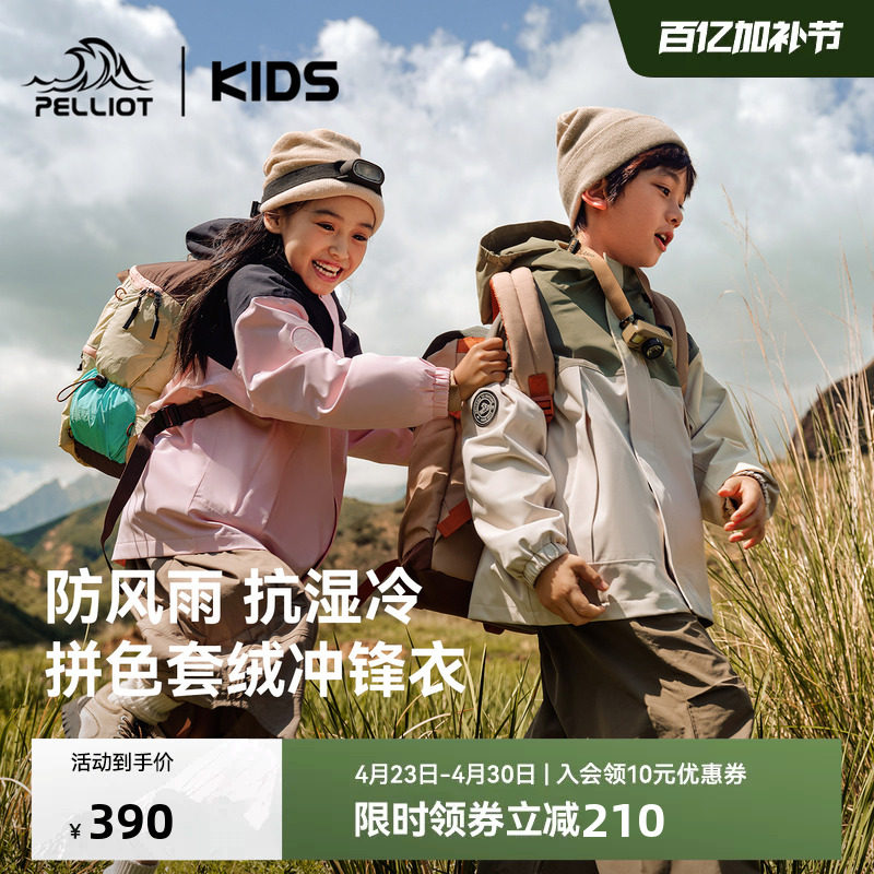 伯希和户外儿童冲锋衣新款保暖抓绒内胆男女童防风防水登山服外套