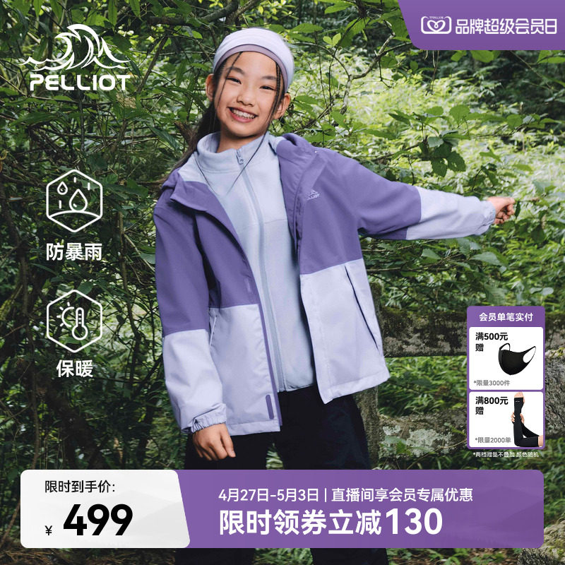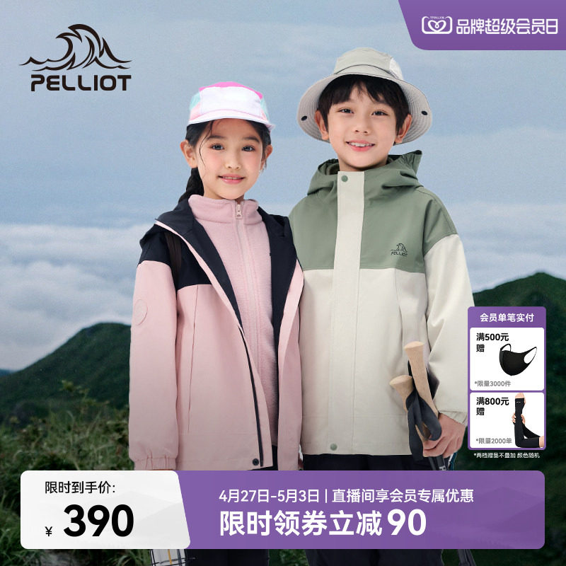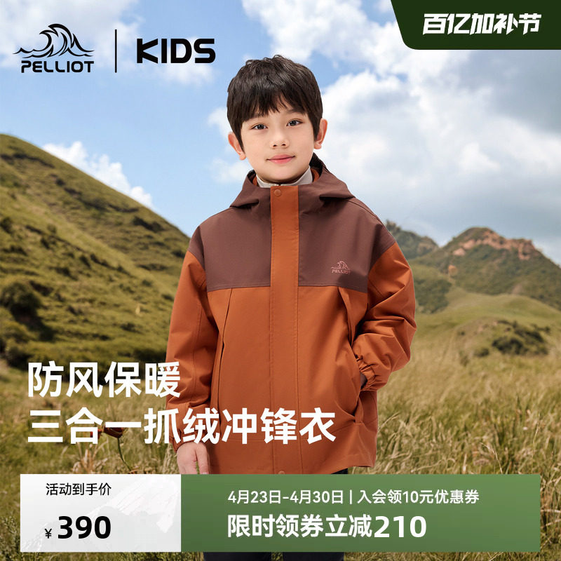 伯希和儿童冲锋衣三合一女户外防风防泼水男童摇粒绒内胆春季外套