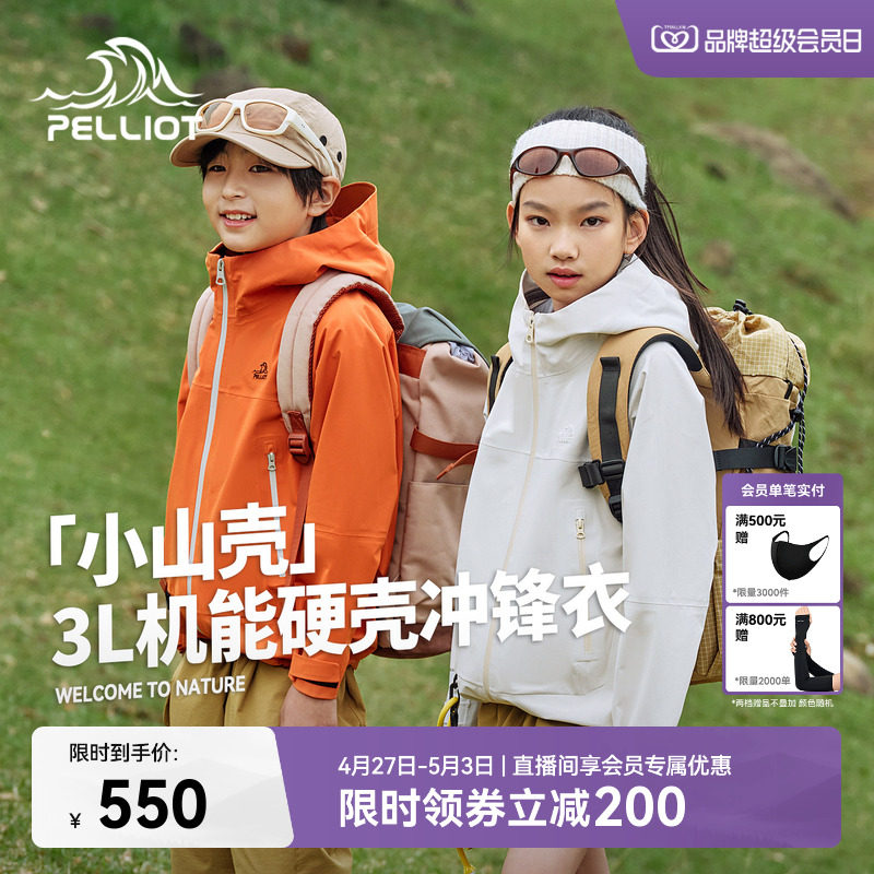 【小山壳】伯希和户外儿童硬壳冲锋衣新款防风防雨登山服运动外套