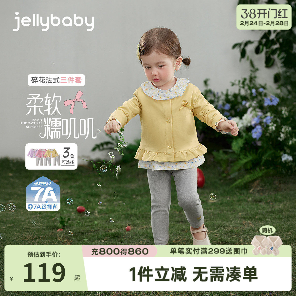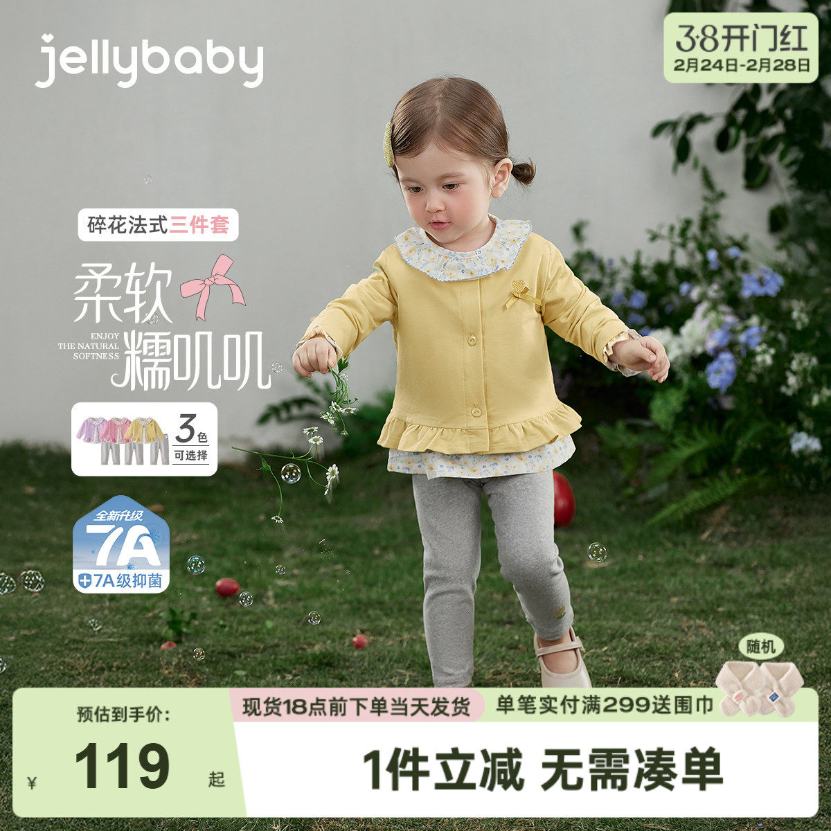 女宝宝春款套装新生儿加厚三件套婴幼儿01一3岁2外出服薄棉秋冬装