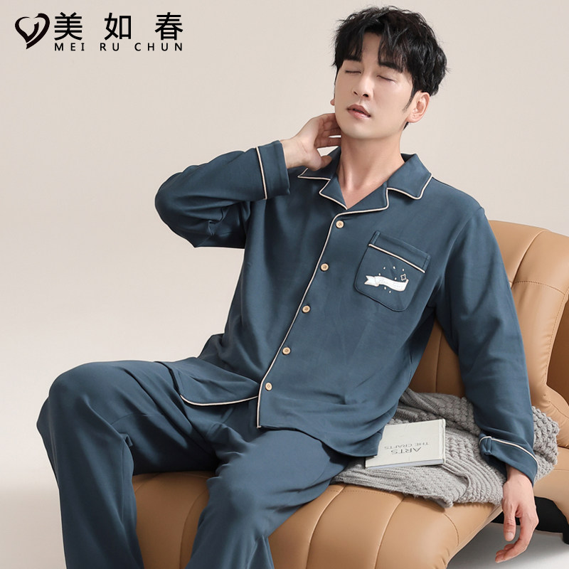 莱卡【高档面料】2025年睡衣男秋冬季纯棉长袖休闲家居服春款套装