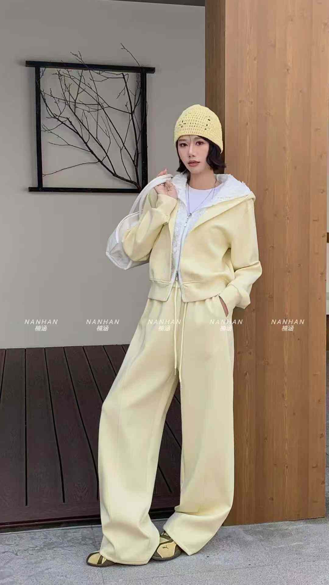 楠涵NANHAN正品2026春款套装休闲时尚蕾丝拼接卫衣阔腿裤两件套女