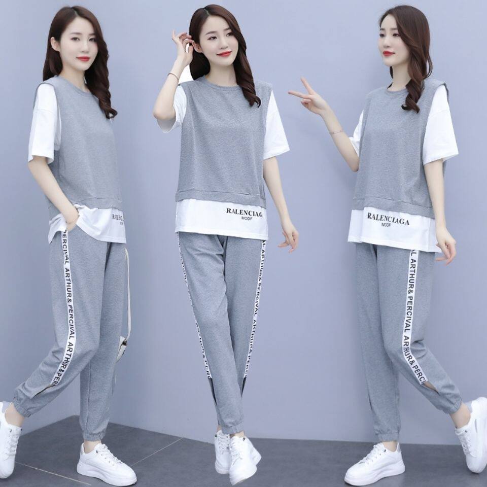 大码女装2022春款套装韩版宽松胖妹妹短袖t恤女长裤休闲两件套装