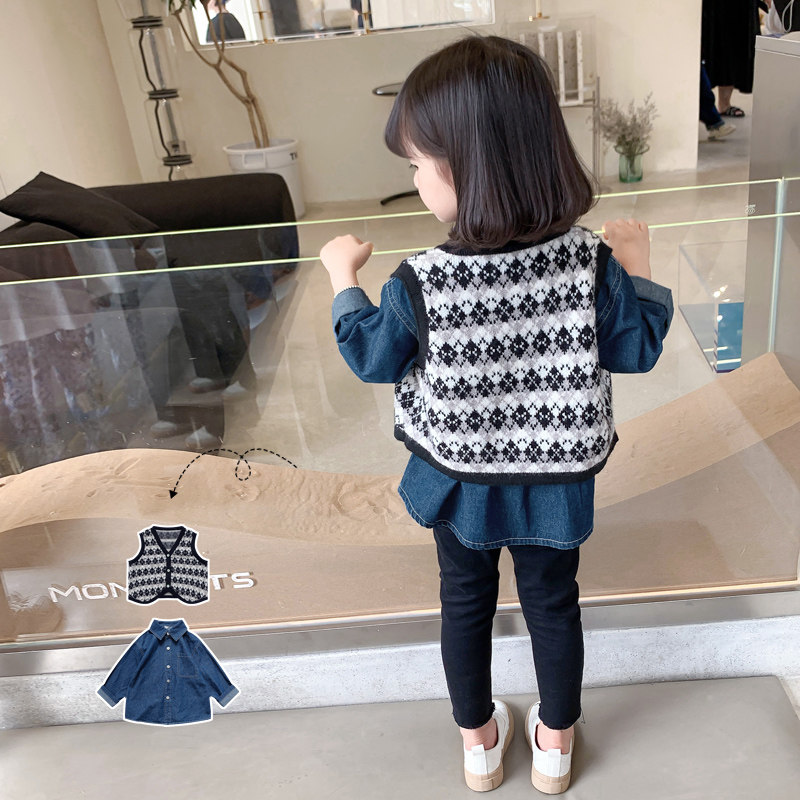 2026女童春秋春款套装新款叠穿宽松毛衣马甲针织上衣潮款时髦衣服