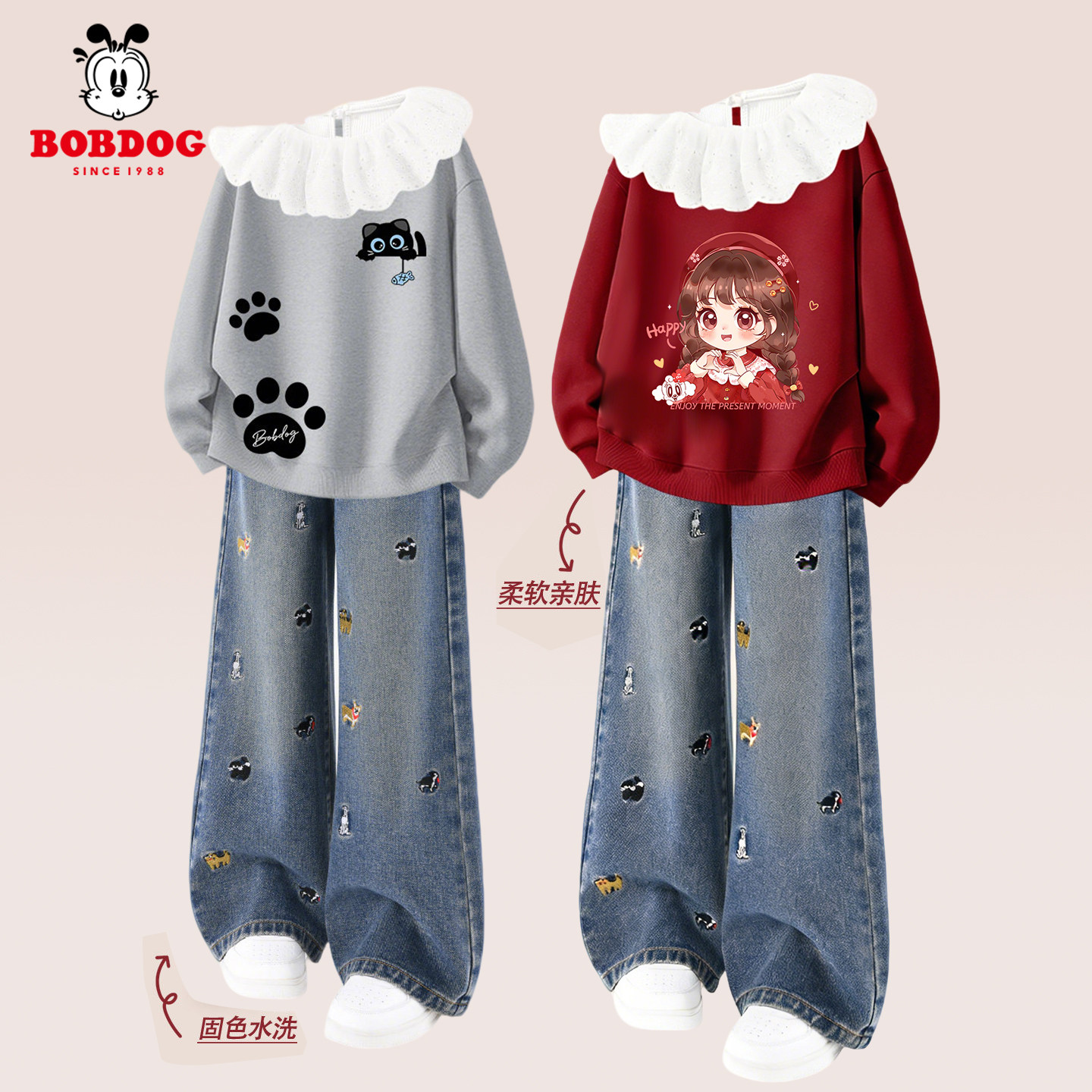 巴布豆女童春款套装2026新款洋气时髦女孩春季卫衣裤子儿童三件套