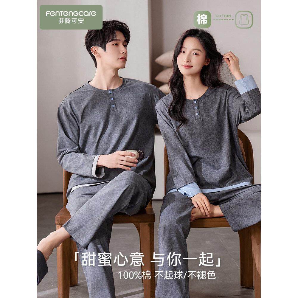 芬腾可安情侣睡衣女士春秋季长袖男款2026新款纯棉家居服春款套装