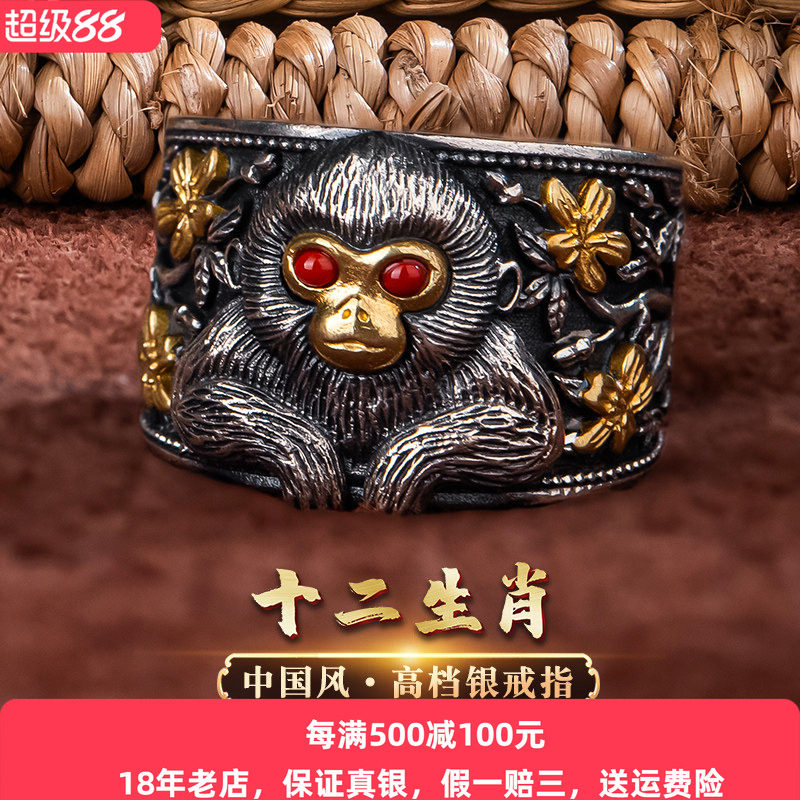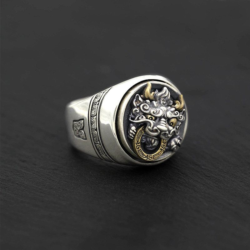 高档款十二生肖戒指纯银男士复古国风本命年霸气龙戒指送男友礼物