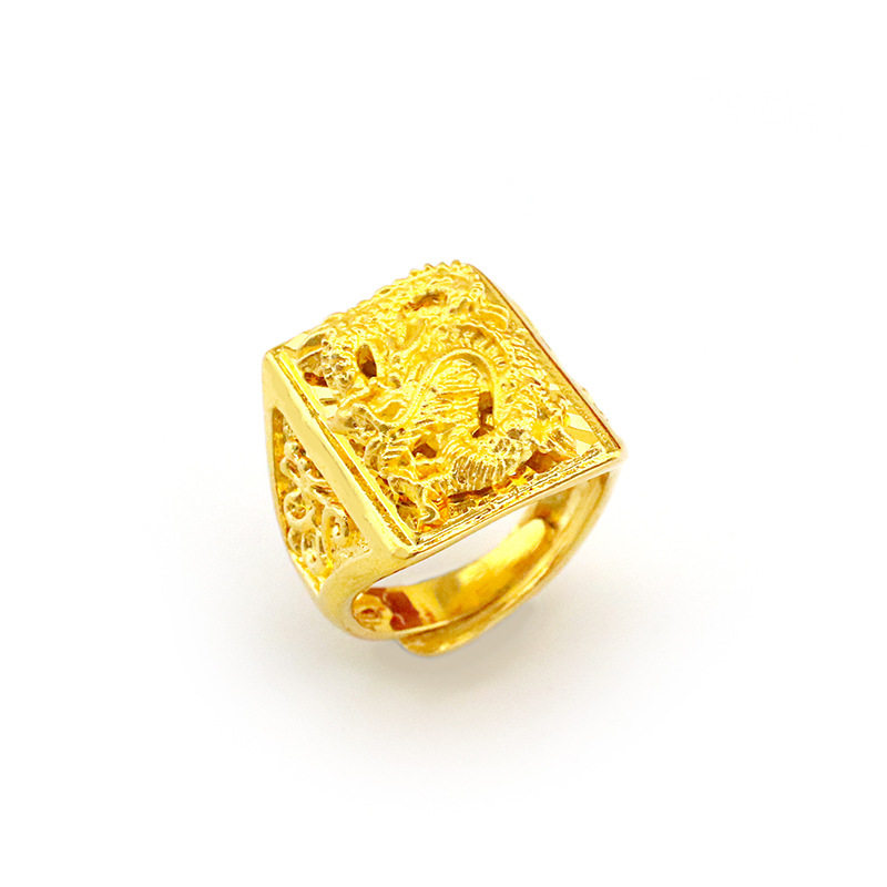 创缘镀黄金戒指男大气龙戒指开口镀沙金指环拍摄道具网红款式板戒