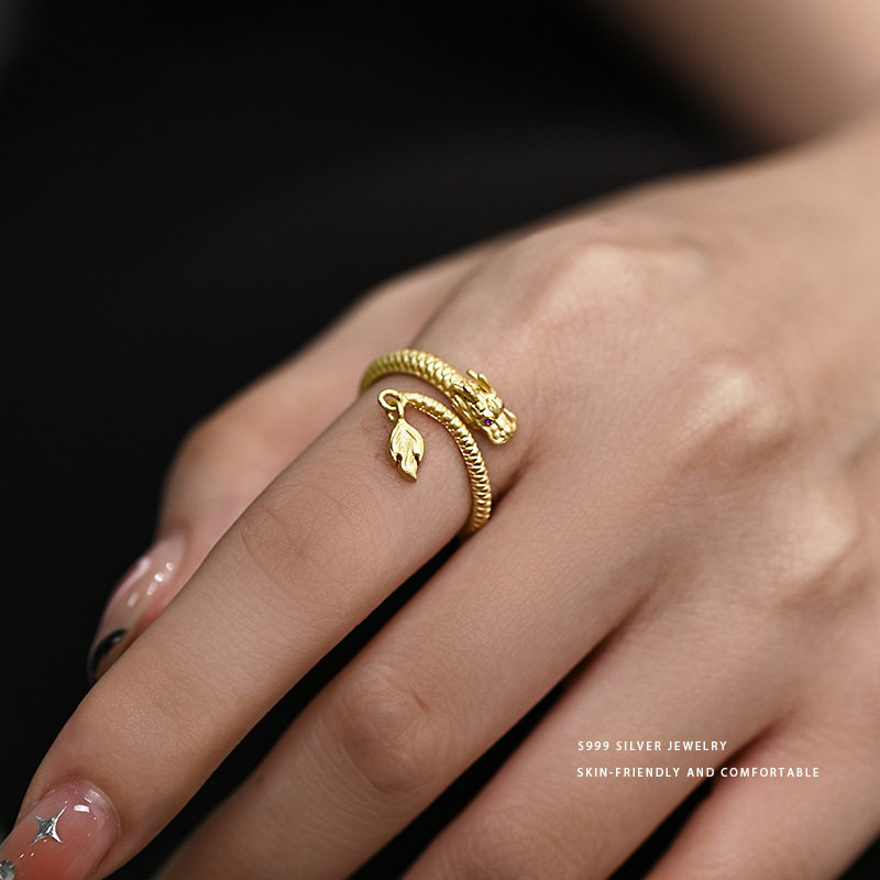 S999纯银龙戒指女小众设计高级感中国风足银龙年本命年开口食指戒