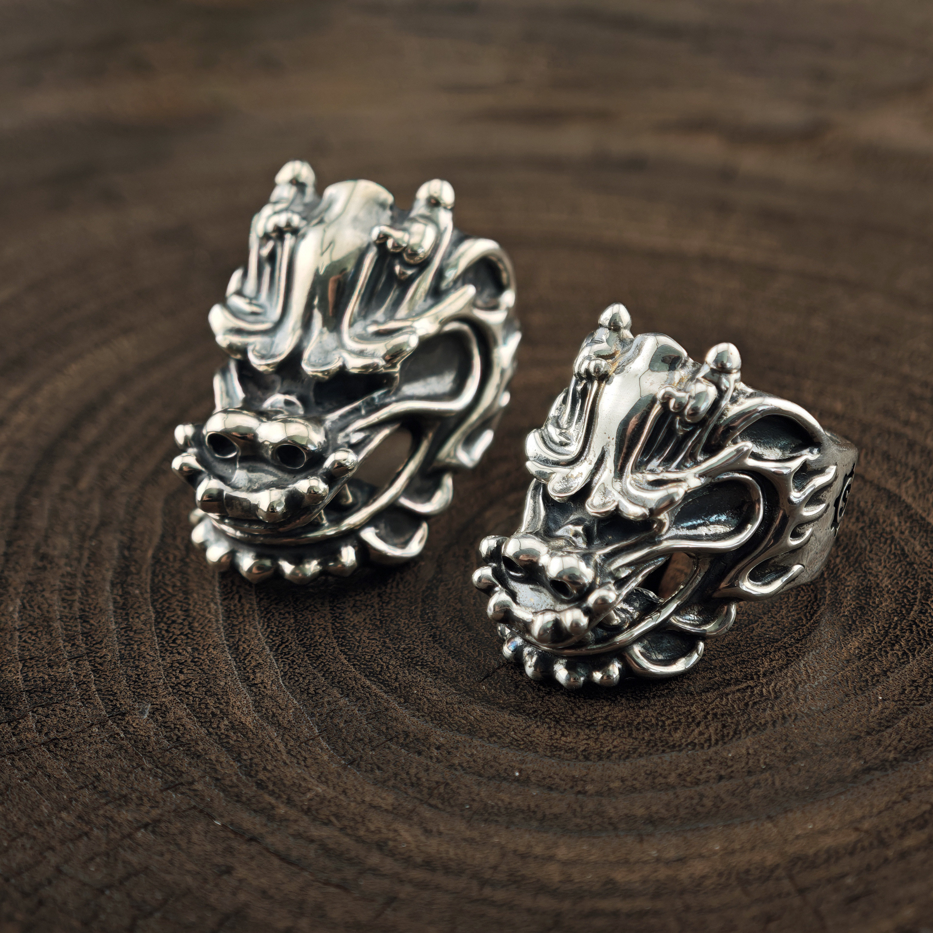 白木黑冰原创s925霸王龙男复古龙戒女生肖龙开口戒指潮牌J0185W1