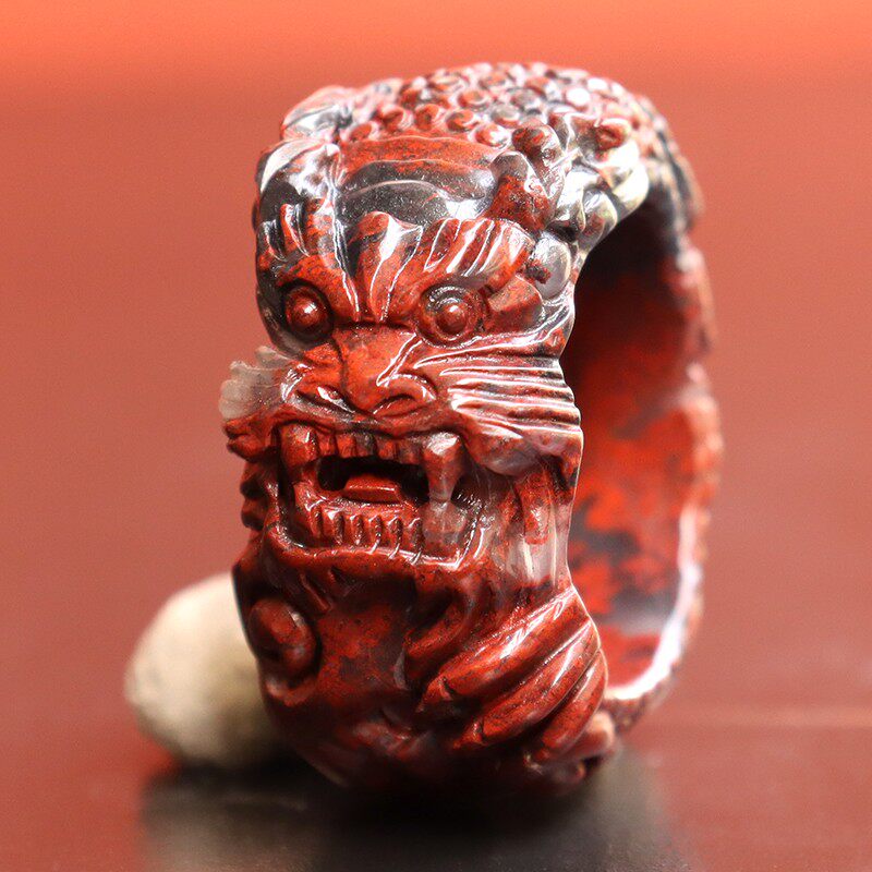 戒指把玩18内径13*6mm9g精雕龙戒戒指桂林鸡血玉石乾坤料黑底红