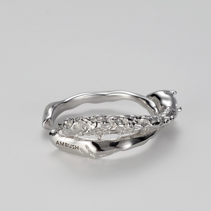 【K社制造】带钻盘龙戒纯银925银饰不规则纹理缠绕戒指开口镶钻