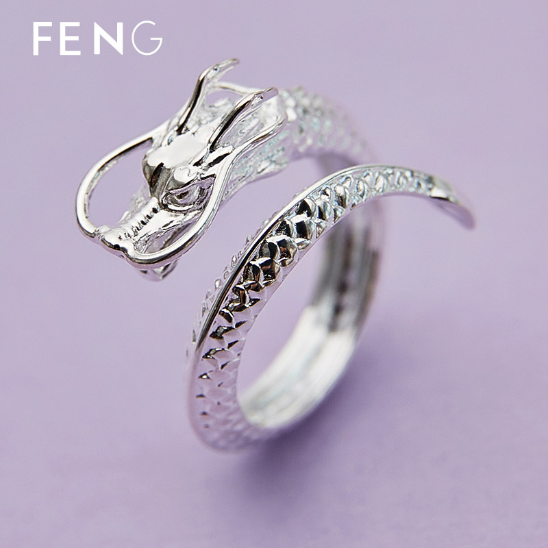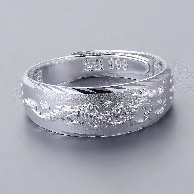 正品龙戒指纯银活口999足银龙指环潮本命年生肖龙戒指个性刻字