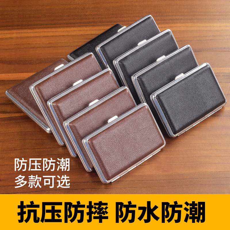 三用20支装细烟盒超薄便携男士皮质创意金属防压防潮高档皮质烟盒