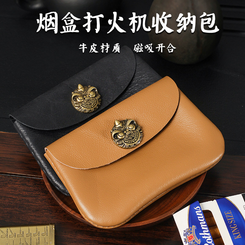 手工牛皮烟盒包男士专用便携钥匙证件收纳袋大容量零碎物品整理包
