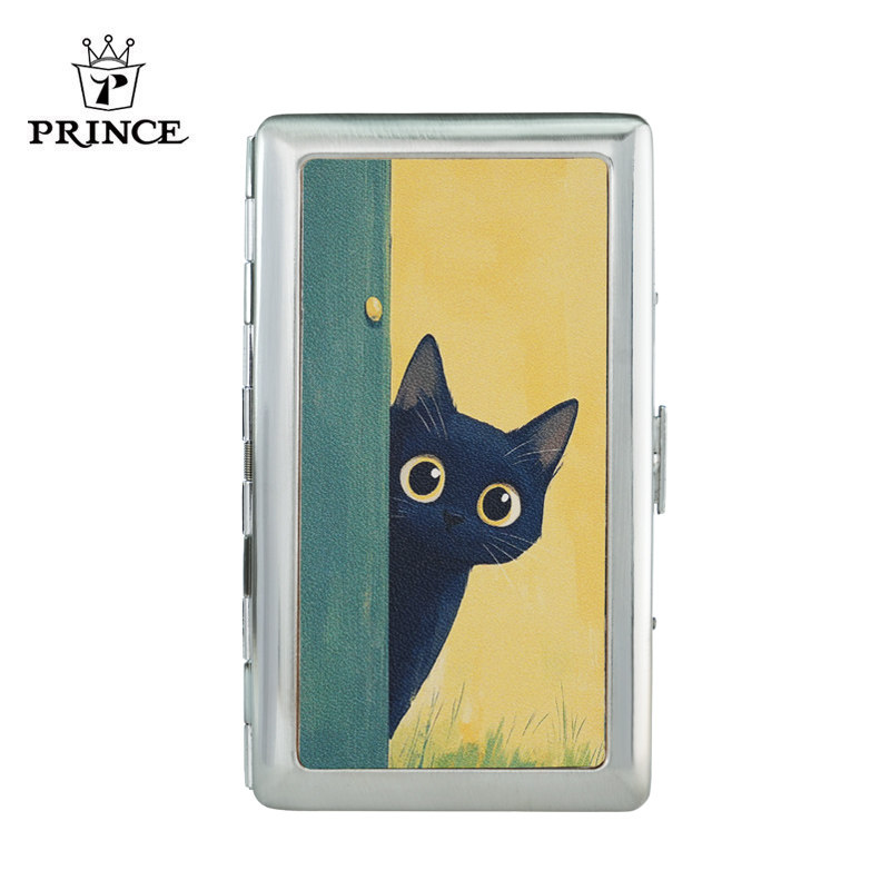 日本新品PRINCE王子可爱复古小萌猫真皮烟盒装粗中细烟盒子