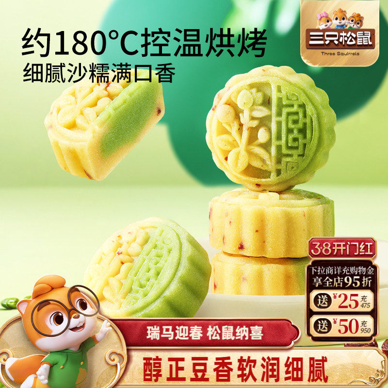 三只松鼠_蔓越莓豆沙糕绿豆糕传统老式糕点点心休闲整箱零食小吃
