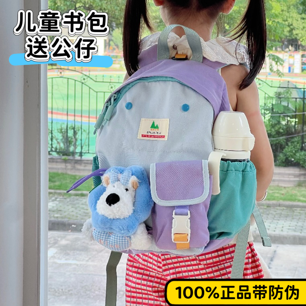 shukiku幼儿园书包男孩儿童女小学生宝宝安抚公仔双肩包轻便防水