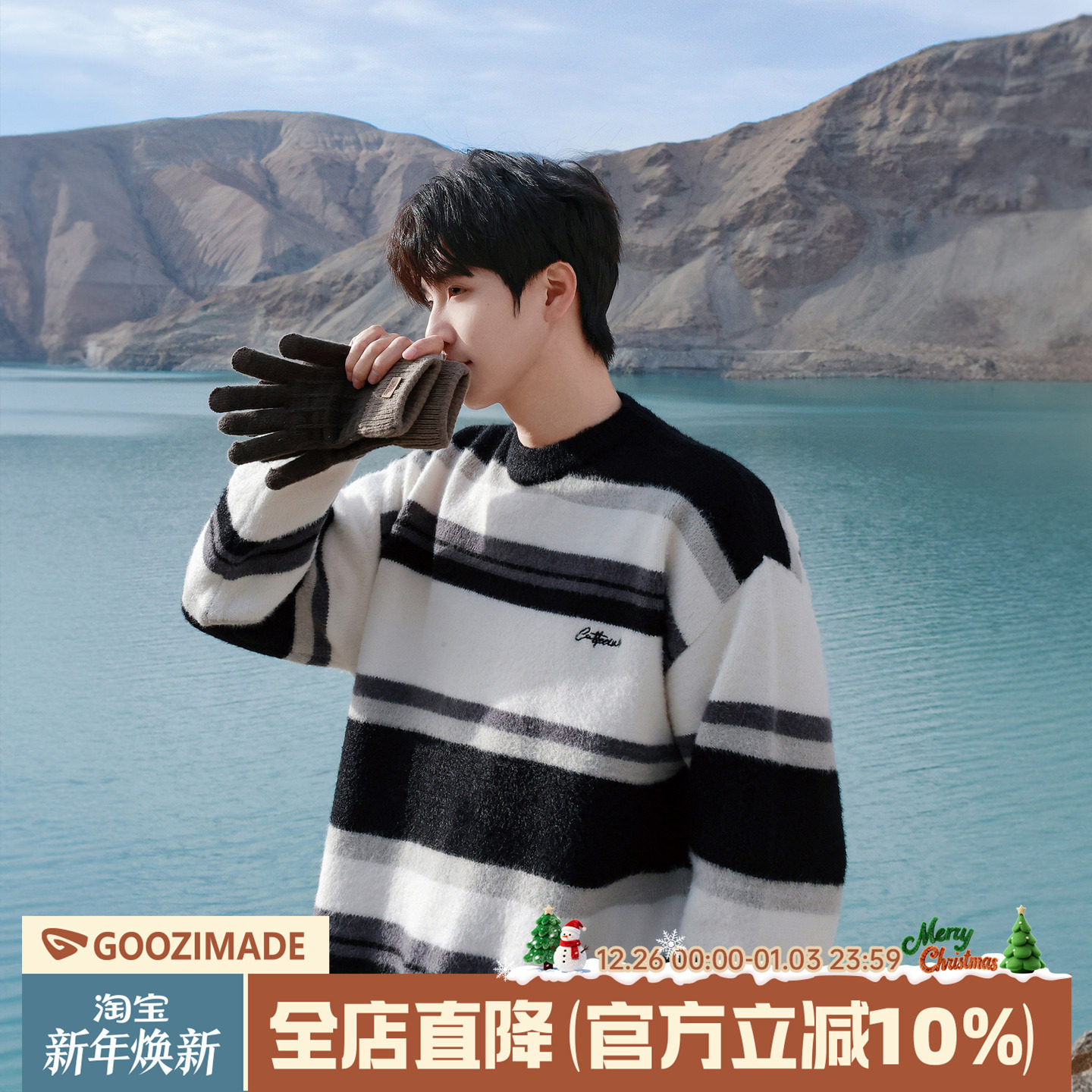 @港仔文艺男 日系仿马海毛毛衣男秋冬新款冬季男生圆领针织衫上衣