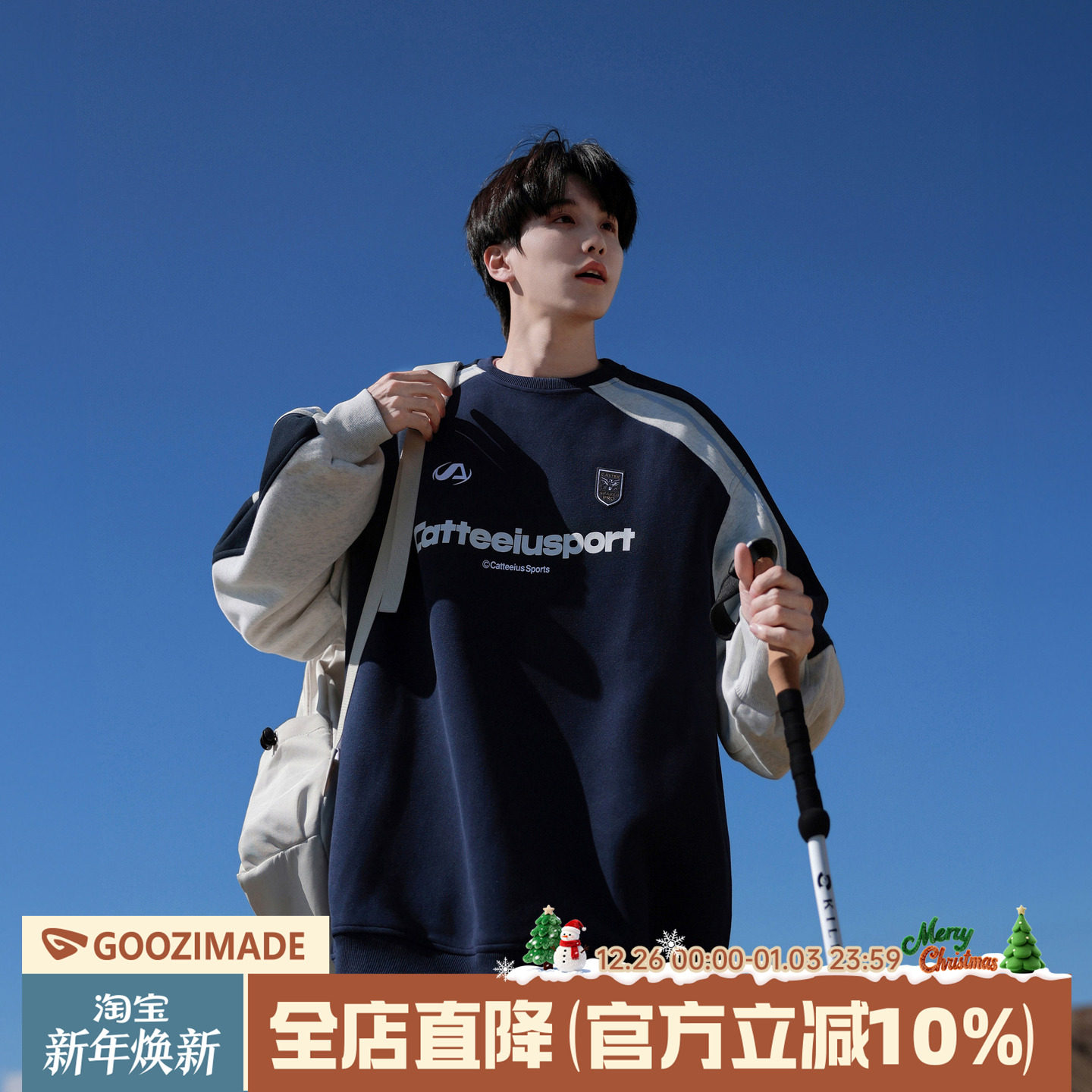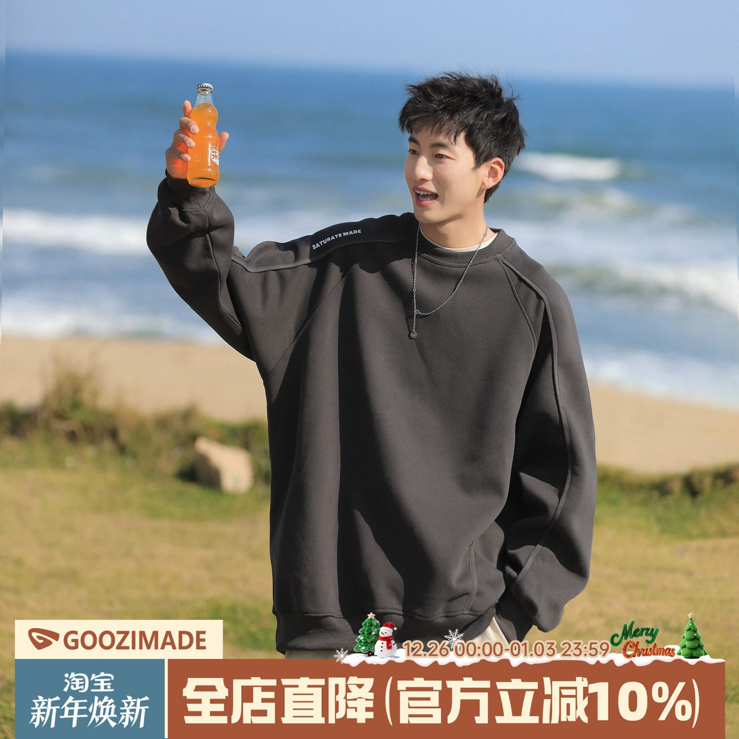 @港仔文艺男 420g重磅解构圆领卫衣男秋冬美式宽松男生无帽上衣