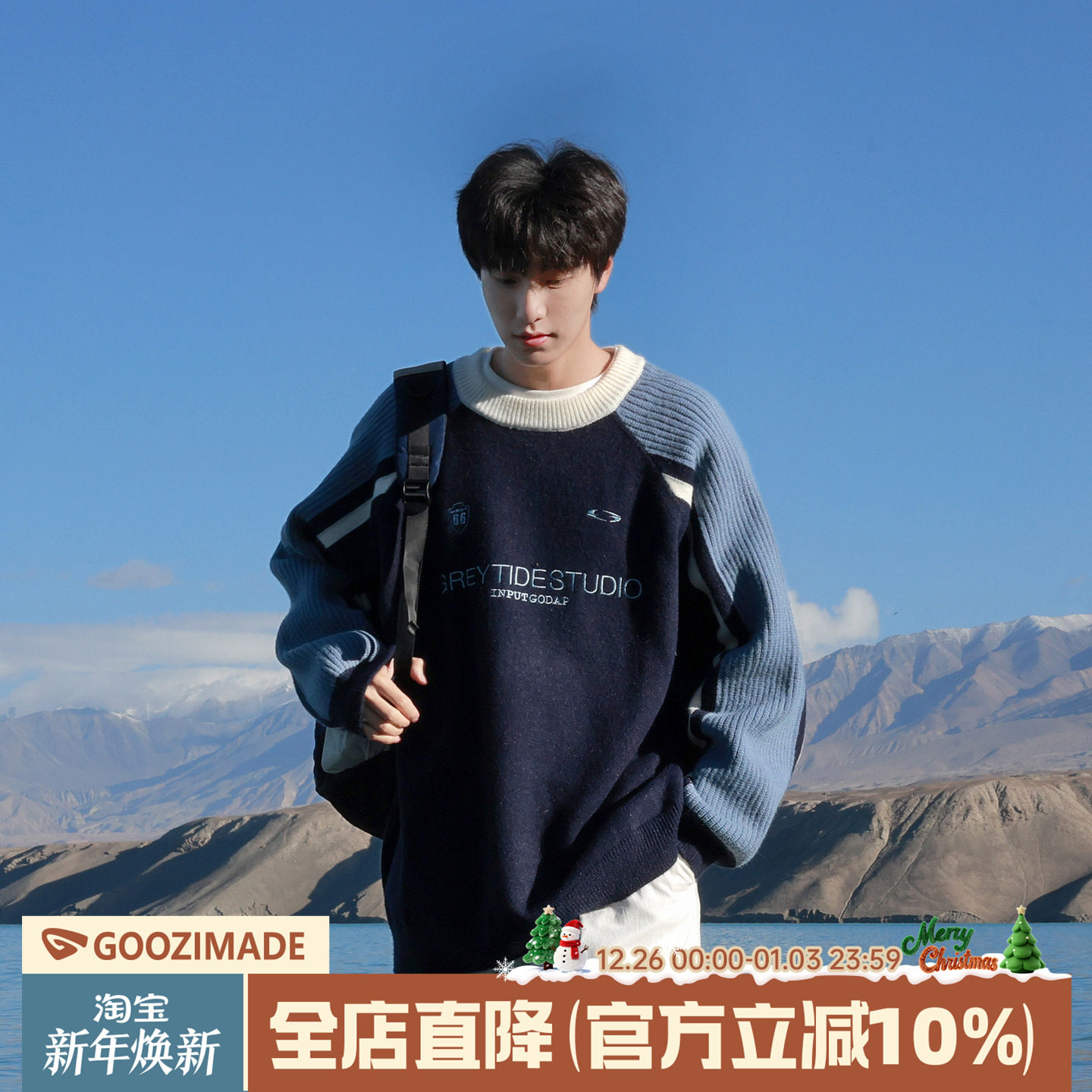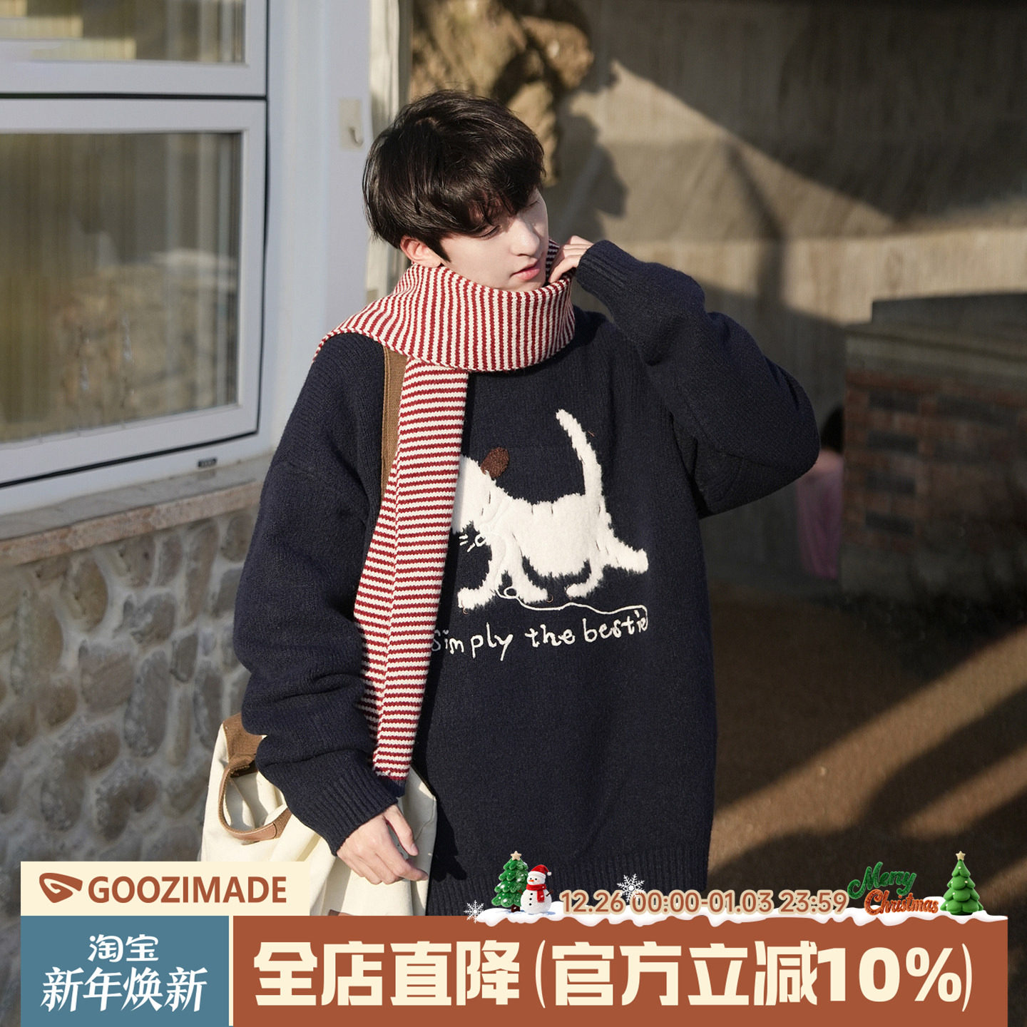 @港仔文艺男 圆领毛衣男冬季2026新款潮牌宽松男生针织衫外套男款