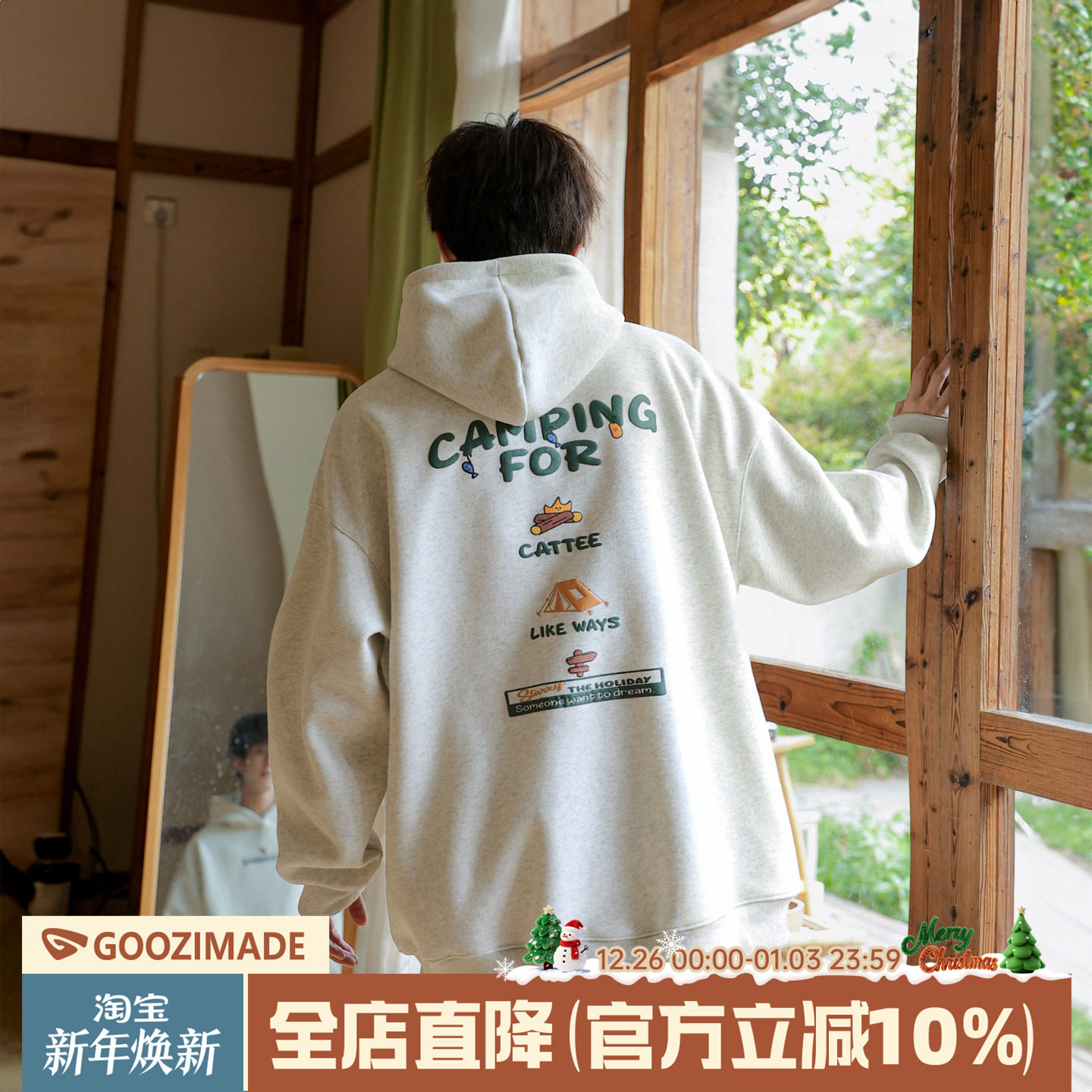 港仔文艺男灰色卫衣连帽男秋冬加绒美式cleanfit重磅男生帽衫男款
